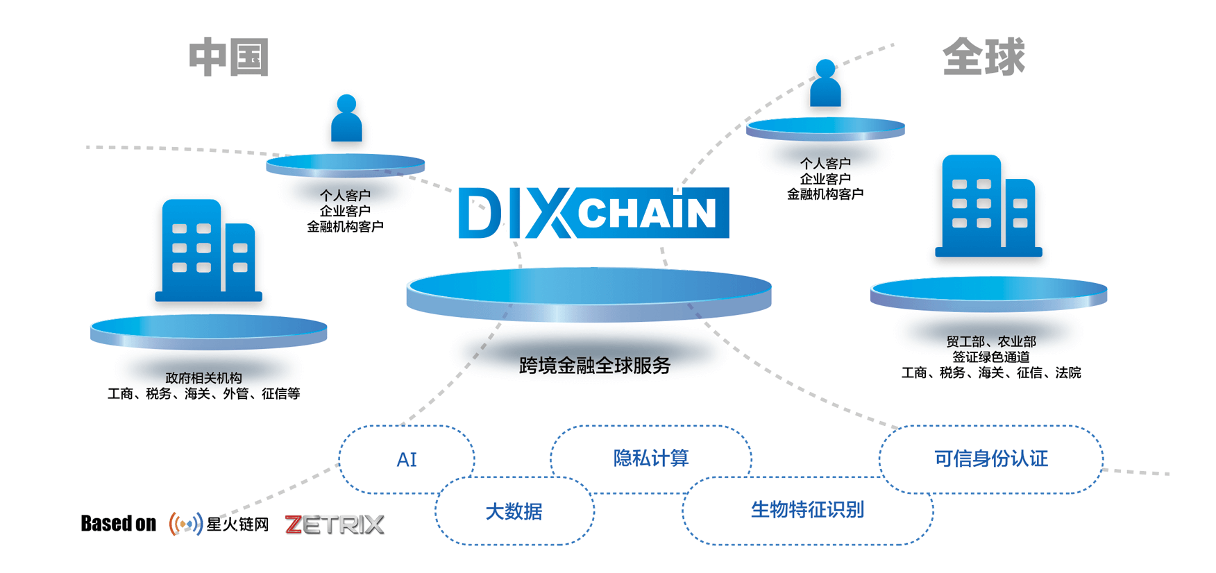 DIXchain成立于2019年,是一家致力于金融科技创新与实践的科技企业,致力于将区块链、物联网、大数据等前沿技术灵活、高效的应用到金融业务场景中,提供全方位的跨境金融综合服务解决方案,核心团队成员来自联想集团、中国银行、普华永道等全球500强公司或知名企业公司高管层,拥有多年技术研发、精细化运营及上市咨询等经验。